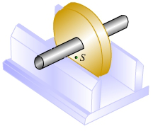 試驗(yàn)時將回轉(zhuǎn)構(gòu)件(如幾何形狀對稱的圓盤)的軸頸支承在兩導(dǎo)軌上。若構(gòu)件是靜不平衡的,則在偏心重力的作用下,將在刀口上滾動。當(dāng)滾動停止后,構(gòu)件的質(zhì)心s在理論上應(yīng)位于轉(zhuǎn)軸的鉛垂下方,如圖2所示。