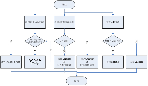 主要為在變流器上添加Crowbar和Chopper電路,并在變流器中配合進(jìn)行相應(yīng)控制: