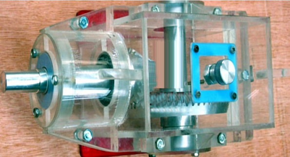 透明減速器模型-采用透明有機玻璃及硬質(zhì)塑料,具有熱塑性,不變形及機構(gòu)強度的特點,使整臺模型透明直觀、玲瓏精致、形象逼真,并能夠轉(zhuǎn)動演示。重點突出了“透明”、“演示”這一特殊的教學(xué)要求。內(nèi)部結(jié)構(gòu)均按有關(guān)減速器原理制作,正確反映教學(xué)原理,力求達到更好的教學(xué)目的和效果
