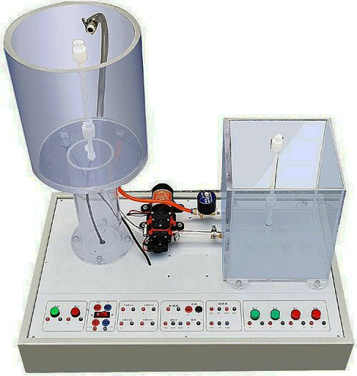 水泵由一功率放大電路來(lái)驅(qū)動(dòng),儲(chǔ)水箱中的水從有機(jī)玻璃水箱頂部進(jìn)入,底部用一手動(dòng)閥門控制出水的流量。用擴(kuò)散硅壓力變送器來(lái)檢測(cè)液位,輸出4~20mA標(biāo)準(zhǔn)信號(hào),通過(guò)PLC可編程控制器可實(shí)現(xiàn)液位的開(kāi)關(guān)和閉環(huán)控制,它可作為學(xué)校老師和科研技術(shù)人員作為研究PLC算法控制的一個(gè)實(shí)驗(yàn)平臺(tái)。