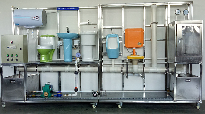 3、排水系統(tǒng)由排水管道和水處理單元等組成。排水管路主要采用UPVC 管進(jìn)行設(shè)計(jì),可進(jìn)行UPVC 管的切割、粘接、安裝和通水試驗(yàn)操作。