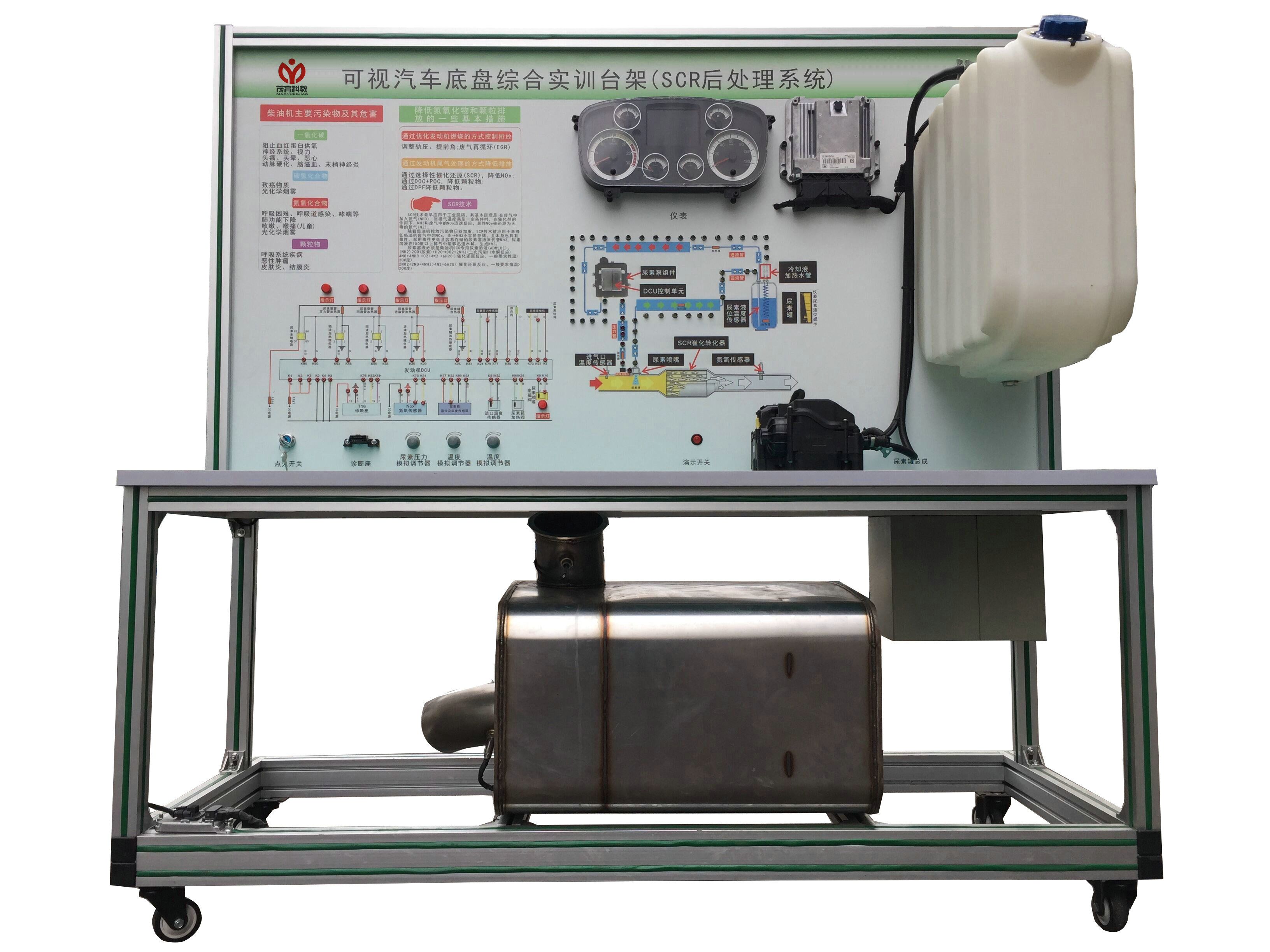 SCR后處理系統(tǒng)實驗臺(電控系統(tǒng))設備底座框架采用高強度鋁合金型材拼接而成,平臺面板采用4mm厚耐腐蝕、耐創(chuàng)擊、耐污染、防火、防潮的高級鋁塑板,表面經特殊工藝噴涂底漆處理;面板打印有永不褪色的彩色電路圖,表面噴涂光油;學生可直觀對照電路圖,認識和分析控制系統(tǒng)的工作原理;實訓臺面板上安裝有檢測端子、可直接在面板上檢測電信號,如電阻、電壓、電流等。