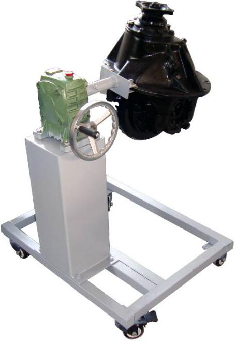 采用減速翻轉(zhuǎn)機(jī)構(gòu),可使主減速器旋轉(zhuǎn)任意角度,并能任意位置鎖止,便于學(xué)生從不同的角度進(jìn)行拆卸和裝配。