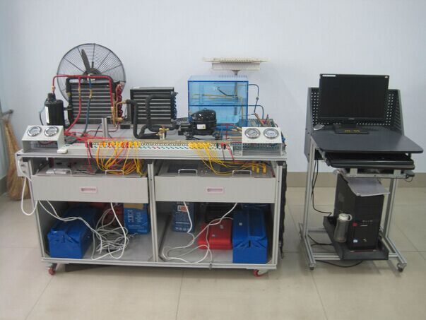 系統(tǒng)由兩部分組成,分別為:分體式熱泵空調(diào)和直冷電冰箱,分體空調(diào)可進(jìn)行制冷、制熱、除濕、自動(dòng)工作模式功能,直冷式電冰箱可進(jìn)行冷藏、冷凍等功能,涵蓋了制冷專業(yè)中所涉及的安裝、管路設(shè)計(jì)焊接技術(shù)、接線、保壓、檢漏、抽真空、充注制冷劑、制冷劑回收、運(yùn)行調(diào)試,控制電路故障考核等。