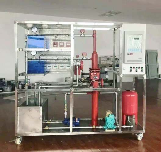 2、模型框架和水箱等主要部件全部使用不銹鋼器件,保證不生銹、不易老化,模擬兩層大樓噴淋滅火系統(tǒng);模型系統(tǒng)主要由噴淋水泵、氣壓罐、濕式報(bào)警閥、水力警鈴、延時(shí)器、壓力開關(guān)、水流指示器、封閉式噴頭、試驗(yàn)閥、火災(zāi)探測(cè)器、火災(zāi)報(bào)警器等典型噴水滅火設(shè)備構(gòu)成,能生動(dòng)模擬大樓內(nèi)水滅火系統(tǒng)的典型結(jié)構(gòu)。