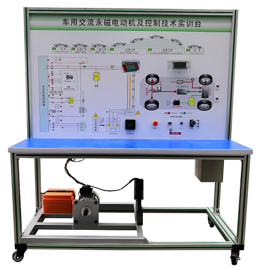 車用交流永磁同步電動機(jī)控制實(shí)驗(yàn)臺-主要由新能源汽車電機(jī)(電機(jī):永磁同步電機(jī))、電機(jī)控制器、檔位開關(guān)、加速踏板、點(diǎn)火開關(guān)、電源及故障設(shè)置系統(tǒng)組成。