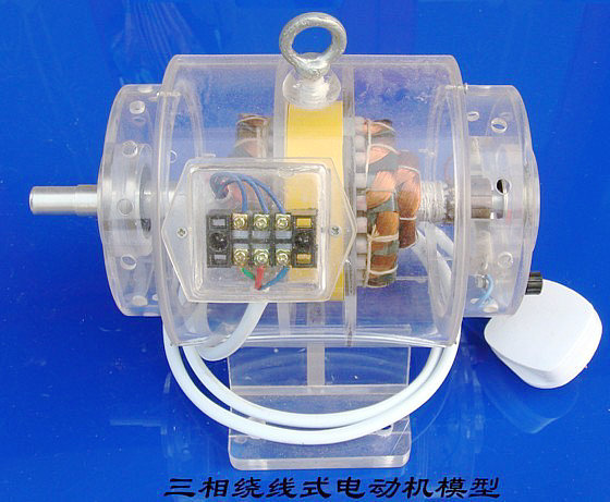 三相繞線式異步電動機模型-采用透明有機玻璃,具有熱塑性、容易變形及機械強度差的特點,全部實現了模具加工、一次成型。使教學模型透明直觀、玲瓏精致、形象逼真,并且能夠通電轉動演示,重點突出了“透明、演示”這一特殊的教學要求。內部結構均按有關電機原理制作,極力追求模型的層次性、透視性,正確反映教學原理,力求達到更好的教學目的和效果.