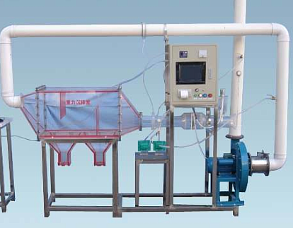 重力沉降室是一種最古老最簡易的除塵裝置。其原理是當含塵氣體進入空室后,利用塵粒自身重力作用使之自然沉降,從而與氣流分離。這種除塵裝置的主要優(yōu)點是結構簡單,價格低廉,耗能少,適用于凈化那些密度大、粒徑粗的粉塵。對于30~50μm的粉塵,去除效率可達60%~80%,但對于小于5μm的粉塵,凈化效率幾乎等于零。目前僅能作為高效除塵器的預處理裝置。本實驗系統(tǒng)主要用于演示重力沉降過程的原理。
