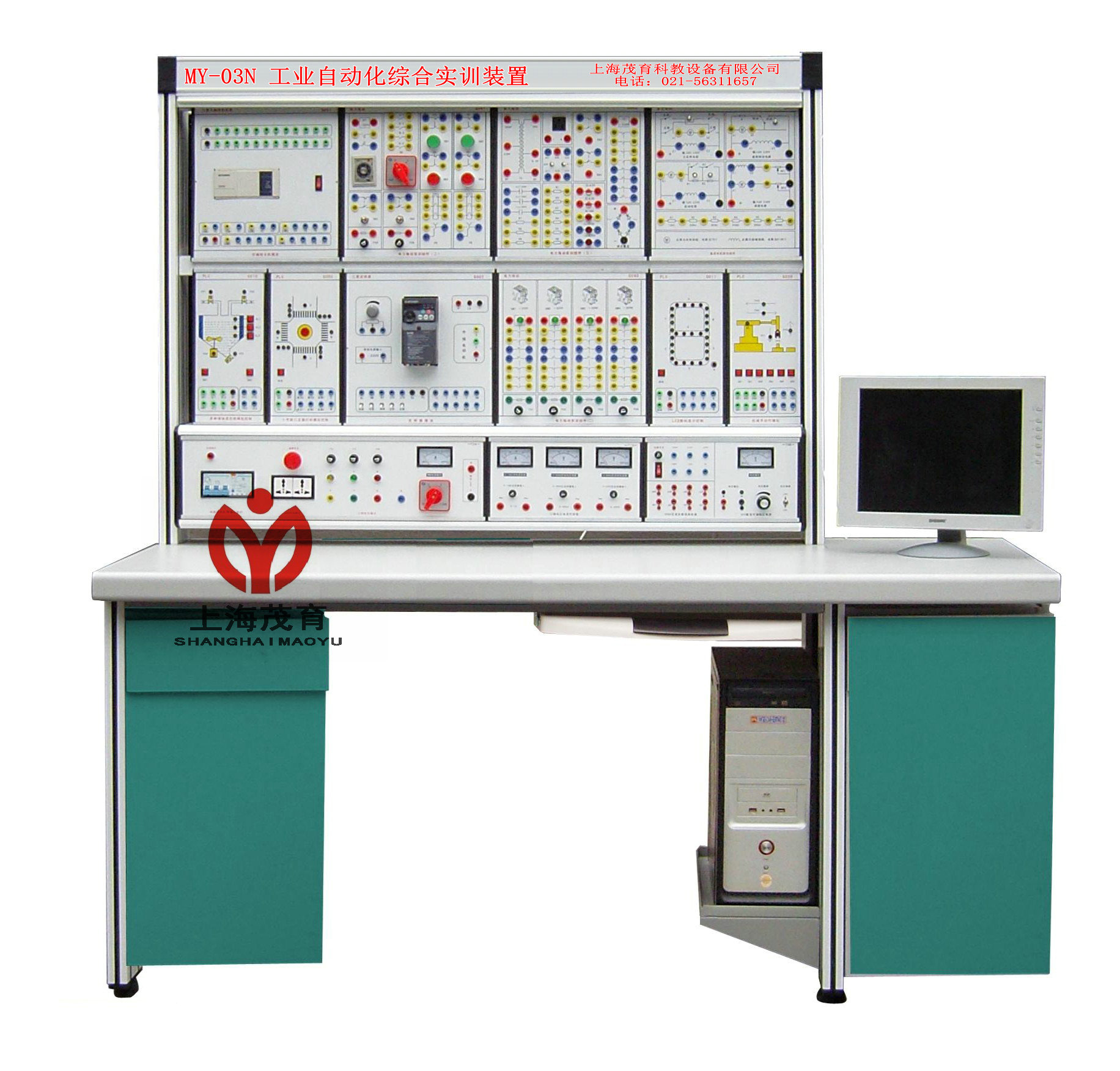 MY-03N 工業(yè)自動(dòng)化綜合實(shí)訓(xùn)裝置最合理、最大化的利用實(shí)驗(yàn)室空間,將實(shí)驗(yàn)部分和功能部分采用掛箱形式、模塊化結(jié)構(gòu),是實(shí)現(xiàn)一室多用、一機(jī)多用的復(fù)合型裝置。配置可編程控制器主機(jī)掛箱、可編程控制器編程技能實(shí)訓(xùn)掛箱、單片機(jī)實(shí)驗(yàn)掛箱、變頻器實(shí)訓(xùn)掛箱、觸摸屏實(shí)訓(xùn)掛箱、電氣控制組件掛箱、電工實(shí)驗(yàn)掛箱、電子實(shí)驗(yàn)掛箱。包含電工、電子、電拖、模電、數(shù)電、可編程控制器、單片機(jī)、機(jī)電一體化、家電、傳感器、通信、機(jī)床電器、液壓傳動(dòng)等實(shí)驗(yàn)內(nèi)容。