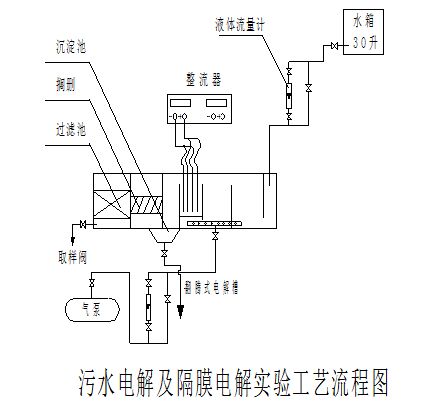 d) 將配好的原水倒入到高位水箱,將流量計(jì)控制旋鈕調(diào)到最大,直到污水注滿電解槽后停止加入。