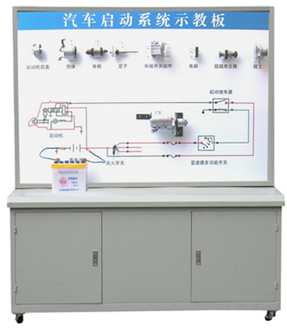 示教板采用大眾車型全新行星式起動(dòng)機(jī),在小車上具有一定的代表性。由起動(dòng)電機(jī),磁性開關(guān),起動(dòng)機(jī)離合器,減速機(jī)構(gòu)、減震裝置等部分構(gòu)成。起動(dòng)系統(tǒng)示教板的上半部分布置了同型起動(dòng)同的解體原體,各擺放在面板上,下半部分為彩色起動(dòng)系統(tǒng)原理圖,并安裝了能夠正常運(yùn)轉(zhuǎn)的起動(dòng)機(jī),真實(shí)反映汽車起動(dòng)機(jī)的實(shí)際工作狀況?梢苿(dòng)萬(wàn)向輪臺(tái)架方便移動(dòng)