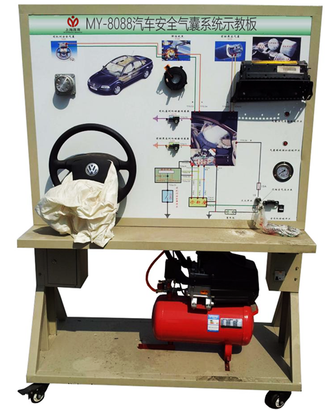 產(chǎn)品組成: 安全氣囊電腦、碰撞傳感器、壓縮空氣罐、左右安全氣囊、可移動(dòng)臺(tái)架、使用說明書及實(shí)驗(yàn)指導(dǎo)書等等。