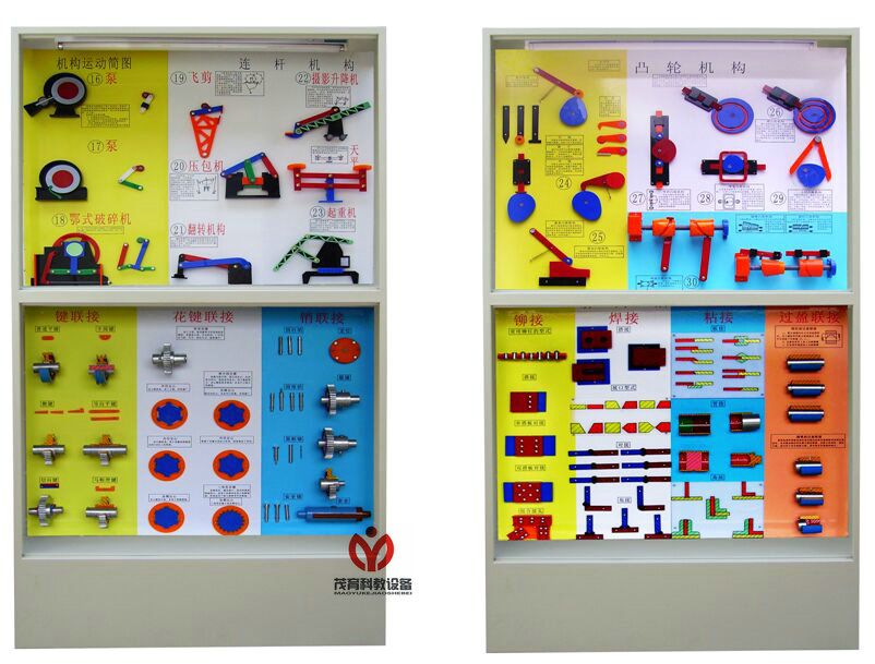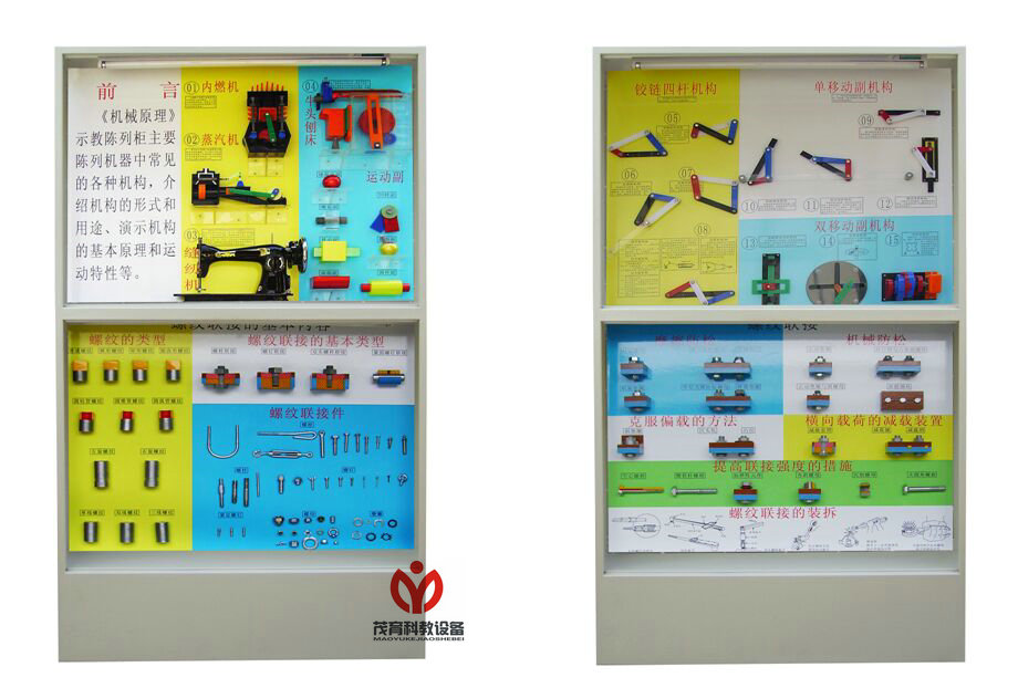 機械陳列柜一共有以下幾種設備:MY-30A 機械原理陳列柜、MY-30B 機械基礎陳列柜、MY-31 機械零件陳列柜、MY-31A 機械零件示教陳列柜、MY-32 機床夾具設計陳列柜、MY-33 電機與變壓器陳列柜、MY-34 機械基礎示教陳列柜、MY-35 模具陳列柜、MY-36 金屬切削陳列柜、MY-37 金屬工藝學陳列柜、MY-38 公差配合陳列柜、MY-39 鉗工工藝學陳列柜、MY-39B 沖壓模具設計與制造陳列柜、MY-39C 塑料模具設計與制造陳列柜、MY-40 金屬切削刀具陳列柜、MY-41C 氣動液壓示教陳列柜、MY-42 機械制圖陳列柜、MY-42A 機械設計基礎陳列柜、MY-42B 機械工程制圖陳列柜、MY-42C 機械創(chuàng)新設計示教陳列柜、MY-43 減速器陳列柜、MY-44 焊工.鉚工工藝學陳列柜、MY-45 大型量具陳列柜、MY-46 機械設計課程設計示教陳列柜、MY-47 機械綜合陳列柜、MY-48 車工工藝學陳列柜、MY-49 機械原理與機械設計陳列柜等系列設備。