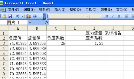 4.2.2 逐漸關(guān)閉罐后的壓力調(diào)節(jié)閥,按下數(shù)據(jù)采集開關(guān),這時,壓力流量曲線會隨著壓力調(diào)節(jié)閥漸漸的關(guān)閉在計算機屏幕中顯示出來,同時,還會顯示當(dāng)前的壓差值與流量值。