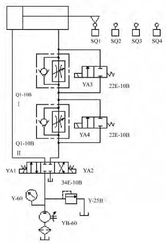 | 2 | 缸二工進(jìn) | + | - | - | - | SQ3 |