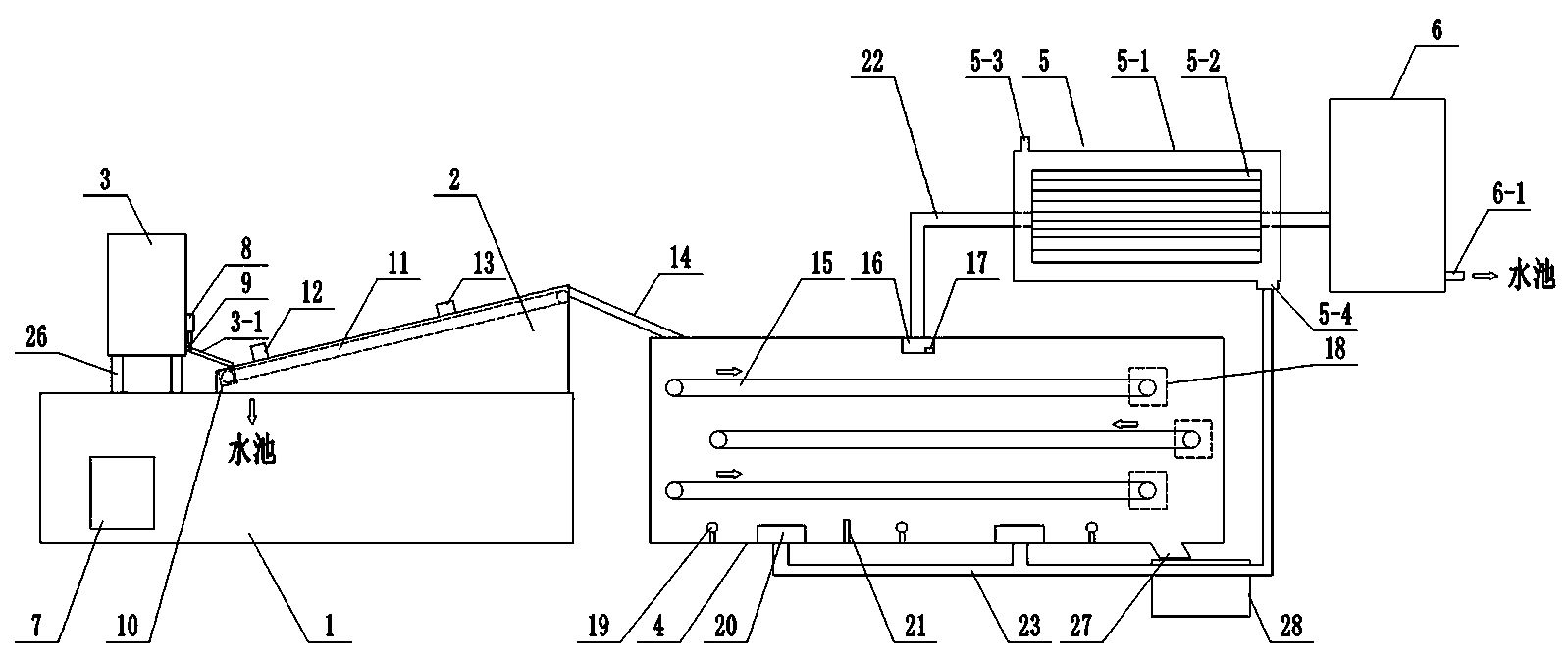 1.板框式污泥脫水機:在密封狀態(tài)下,由高壓泵驅動的污泥被板框擠出,使污泥中的水通過濾布排出,達到脫水的目的。
