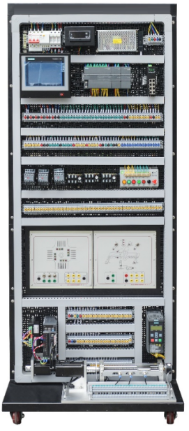 實(shí)訓(xùn)單元組成:網(wǎng)孔板實(shí)訓(xùn)區(qū)主要由電源單元、PLC單元、PLC學(xué)習(xí)箱單元、基礎(chǔ)實(shí)訓(xùn)單元、小車(chē)運(yùn)動(dòng)單元、變頻器單元等組成。