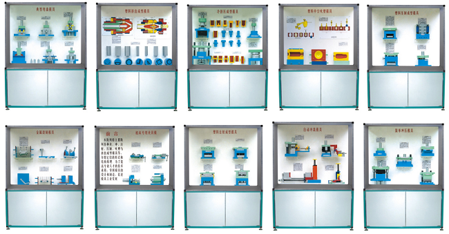 模具示教陳列柜是根據(jù)學(xué)校教學(xué)要求需要生產(chǎn)、特制《冷沖壓與塑料成型工藝及模具設(shè)計(jì)》與《塑料成型模具》等教材設(shè)計(jì)而成,這套模具陳列柜共分十個柜和一臺 DVD控制臺,模型材料采用工程塑料制作,板面附有必要文字說明,演示形象逼真,工藝美觀,使用本陳列柜提高教學(xué)效果,是一套現(xiàn)代化模具設(shè)計(jì)課程應(yīng)用陳列室設(shè)備。