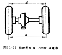 所謂前束是指兩前輪軸前輪距A小于前輪軸后輪距B的差值。其標(biāo)準(zhǔn)前束值為B-A=0-3毫米,如圖所示。