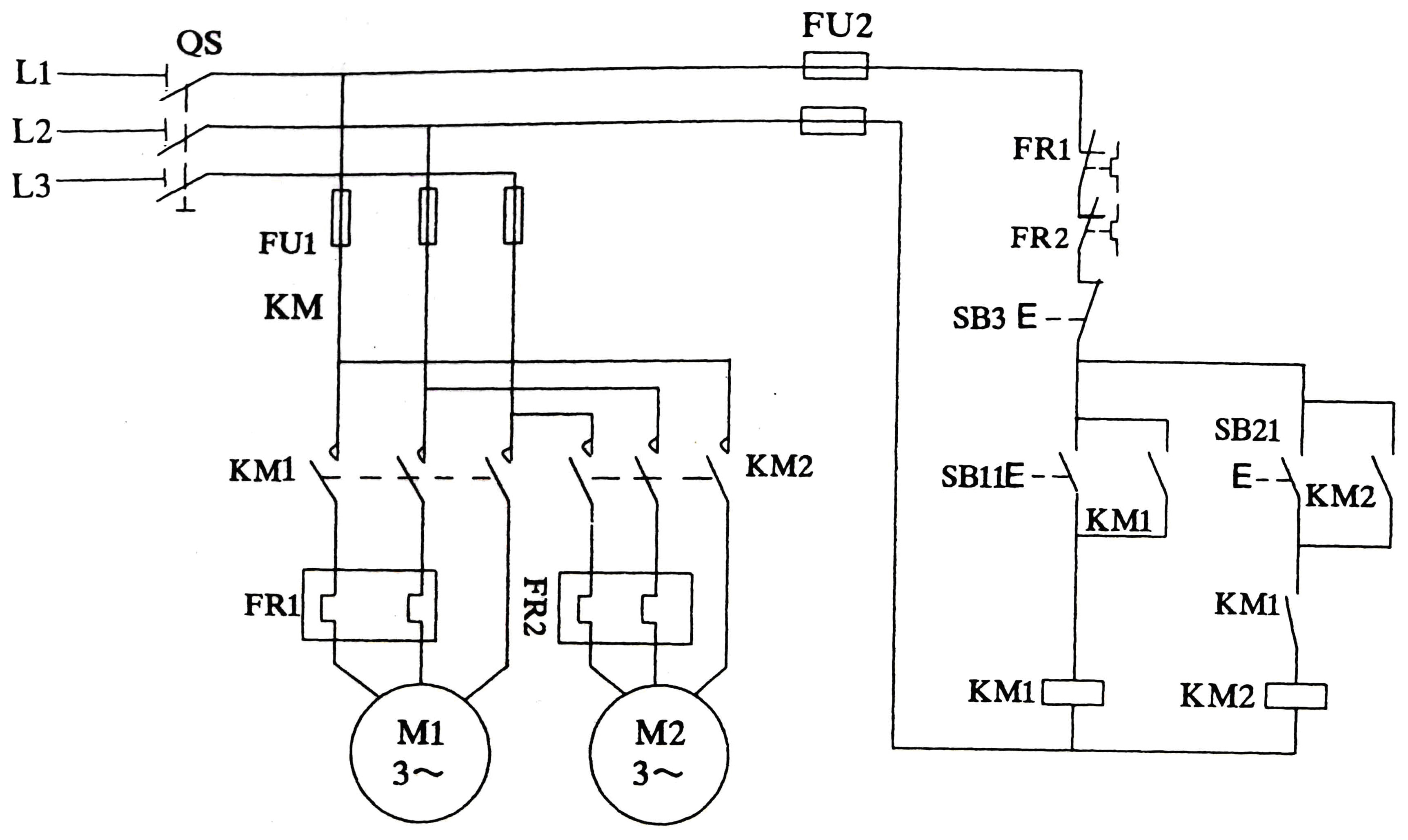 SB11、SB21、SB3 按鈕開關     2 SB3為紅色