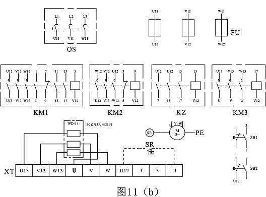 布置與接線可參考圖1(b),操作者應畫出具體接線圖。圖中R用DW-05的3只90Ω電阻,安裝與接線后應符合第二章2—1的要求。