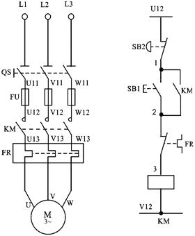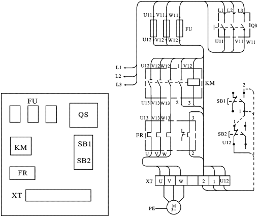 確認接線正確后,接通交流電源L1、L2、L3并“合”開關QS,按下SB1,電機應起動并連續(xù)轉(zhuǎn)動,按下SB2電機應停轉(zhuǎn)。