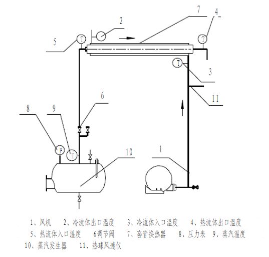 換熱器是由各種不同的傳熱元件組成的換熱設(shè)備,冷熱流體借助換熱器中的傳熱元件進(jìn)行熱量交換而完成加熱或冷卻任務(wù)。換熱器的傳熱系數(shù)是衡量換熱器的換熱效果好壞的標(biāo)準(zhǔn),不同傳熱元件組成的換熱器的性能存在著較大的差異。確定換熱器換熱性能(主要是指傳熱系數(shù))的有效途徑是通過實驗進(jìn)行測定。