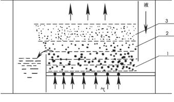 現(xiàn)以篩板塔為例來說明板式塔的操作原理。如圖3,上一層塔板上的液體由降液管流至塔板上,并經(jīng)過板上由另一降液管流至下一層塔板上。而下一層板上升的氣體(或蒸汽)經(jīng)塔板上的篩孔,以鼓泡的形式穿過塔板上的液體層,并在此進(jìn)行氣液接觸傳質(zhì)。離開液層的氣體繼續(xù)升至上一層塔板,再次進(jìn)行氣液接觸傳質(zhì)。由此經(jīng)過若干層塔板,由塔板結(jié)構(gòu)和氣液兩相流量而定。在塔板結(jié)構(gòu)和液量已定的情況下,鼓泡層高度隨氣速而變。通常在塔板以上形成三種不同狀態(tài)的區(qū)間,靠近塔板的液層底部屬鼓泡區(qū),如圖3中的1;在液層表面屬泡沫區(qū),如圖3中的2;在液層上方空間屬霧沫區(qū),如圖3中的3。