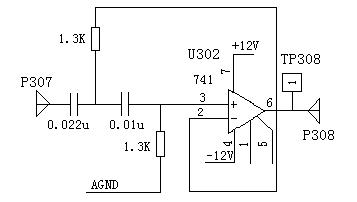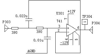 ②逐次改變信號發(fā)生器頻率,并測量其輸出TP302的電壓有效值。