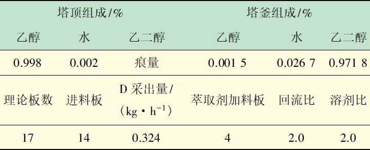 通過(guò)萃取精餾實(shí)驗(yàn)操作,得到的數(shù)據(jù)見(jiàn)表2。