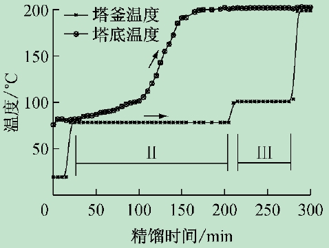 圖2 給出了塔釜和塔頂溫度變化曲線(xiàn),塔釜溫度