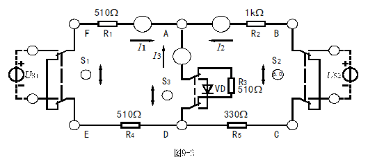 3.US1和US2共同作用時(開關(guān)S1和S2分別投向US1和US2側(cè)),各電流、電壓的參考方向見圖4-2。