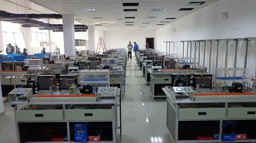 空調(diào)實驗室設備-是根據(jù)制冷制熱類行業(yè)中空調(diào)與冰箱維修技術(shù)的特點,針對空調(diào)和冰箱的電氣控制以及制冷系統(tǒng)、電氣控制系統(tǒng)、系統(tǒng)調(diào)試、故障診斷等特點進行設計。強化了學生對空調(diào)冰箱系統(tǒng)管路的安裝與維修系統(tǒng)調(diào)試等的等的綜合職業(yè)能力,通過設備進行項目訓練,能提高學生的動手操作能力,計劃組織能力,制冷系統(tǒng)的調(diào)試安裝能力,電氣控制電路維修能力。