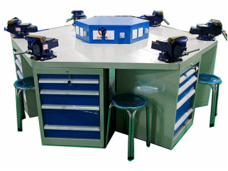 鉗工實(shí)訓(xùn)室是為了配合技校、職業(yè)學(xué)校、勞動(dòng)培訓(xùn)中心、大中專院校課程中的技能訓(xùn)練要求,從產(chǎn)品的安全保障、學(xué)教管系統(tǒng)配套、標(biāo)準(zhǔn)化生產(chǎn)、成熟可靠性、運(yùn)輸安裝組合等多方面出發(fā),精心設(shè)計(jì)而成。 鉗工桌及貨架采用了鋼質(zhì)組合式拆裝結(jié)構(gòu),利于運(yùn)輸安裝及適應(yīng)于各種不同實(shí)訓(xùn)場(chǎng)地。同時(shí)采用了磷化噴塑工藝,經(jīng)久耐用。通過鉗工工作臺(tái)可以使學(xué)生熟悉各種工具的使用;掌握錘、鋸、銼、鑿、劃線、測(cè)量等各種鉗工的基本技能;提高學(xué)生的鉗工工藝水平。